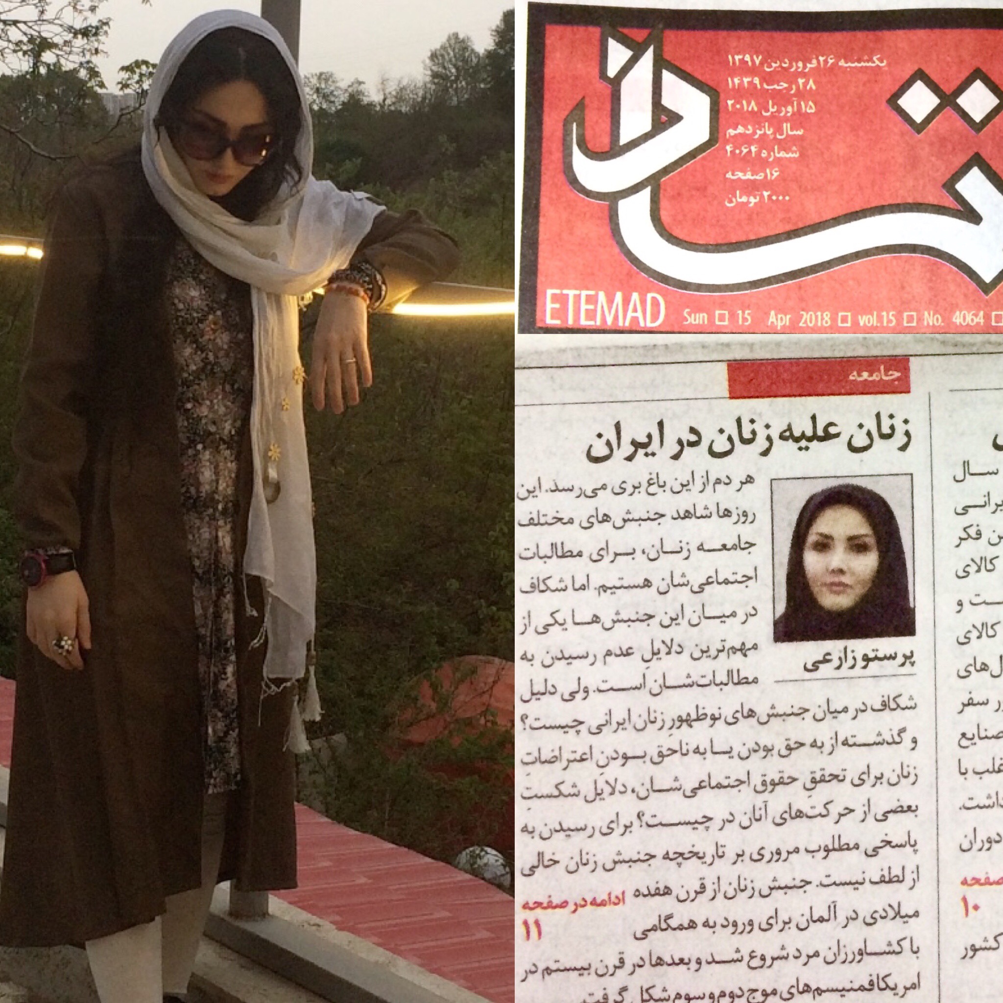 شماره ٤٠٤٦ روز یکشنبه ٢٦ فروردین ٩٧ روزنامه اعتماد ملی در صفحه ی اول خود تصویر و بخشی از یادداشت "پرستو زارعی" با عنوان " زنان علیه زنان در ایران" را منتشر کرد . ادامه ی این مقاله را می توان در صفحه ی ١١ ، گروه جامعه این روزنامه یافت...